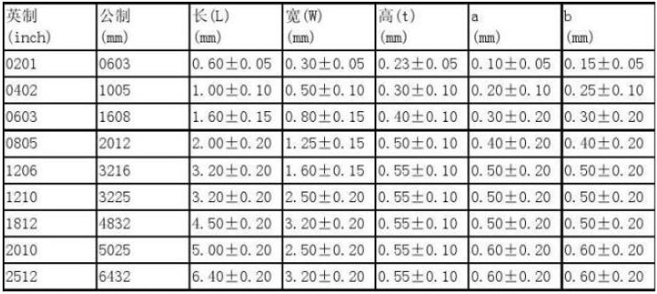 【0603】:表示尺寸,长度为0.08英寸,宽度为0.05英寸。此外,常见的电容尺寸还有0201,0402,0603,0805,0508,1206,0612,1210,1808,1812等。
