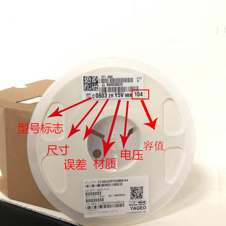 我们就以国巨为例,如图国巨电容:CC0603ZRY5V9BB104(更多品牌请联系超翔技术人员)